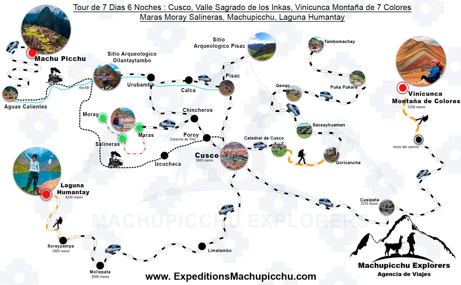 en este Tour de 7 Dias en Cusco Conoceremos la ciudad de Cusco "El Ombligo del mundo" conociendo con el city tour de cusco, los sitios aqueologicos que la ciudad de cusco les ofrece, proseguiendo a ir a Aguas Calientes- Machupicchu
